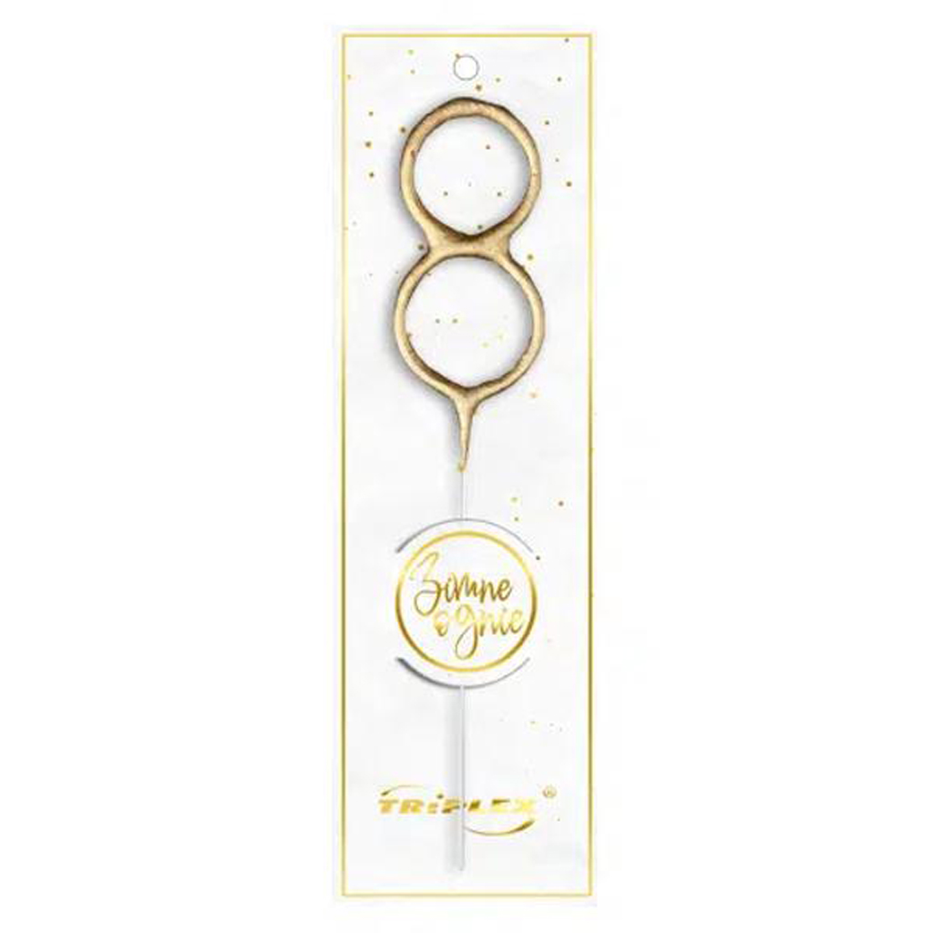 Zlatá prskavka TORO ve tvaru číslice „8“ je vhodná pro slavnostní okamžiky jako jsou narozeniny, dětské oslavy či tematické párty. Tato prskavka je způsob jak ozdobit dort či jiné pochoutky na oslavě. Jednotlivé prskavky můžete doplnit o další číslice a vytvořit tak ideální dekoraci pro vaši oslavu narozenin či jubilea.
