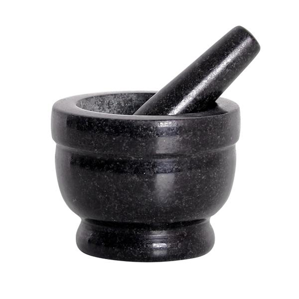 originální hmoždíř je nezbytným nástrojem pro drcení bylin, koření a přísad orientální kuchyně. Je vhodný také na výrobu pesta. Materiál – žula. Rozměry – 11 x 8,5 cm. Barva černá.